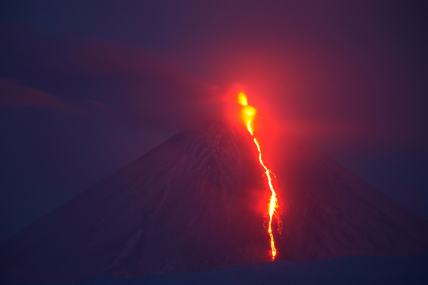 Из кратера Ключевского вулкана начала вытекать лава