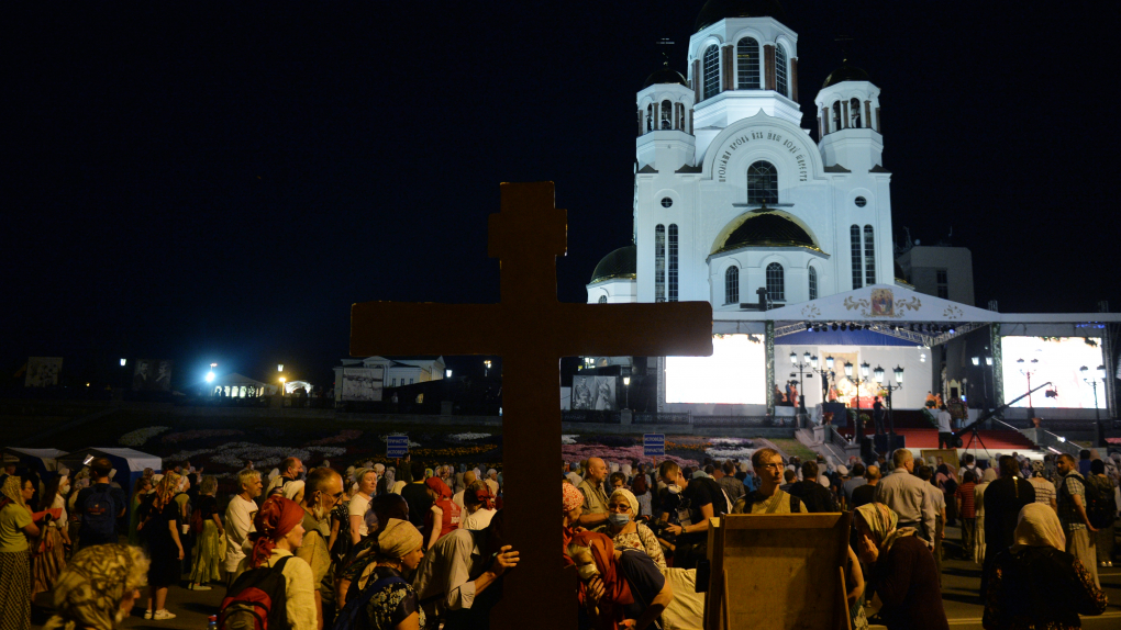 В Екатеринбурге почти 10 тысяч православных паломников совершили Царский крестный ход, сообщает Газета.ру.