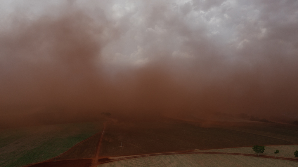 Песчаная буря окрасила небо южных регионов России в оранжевый цвет