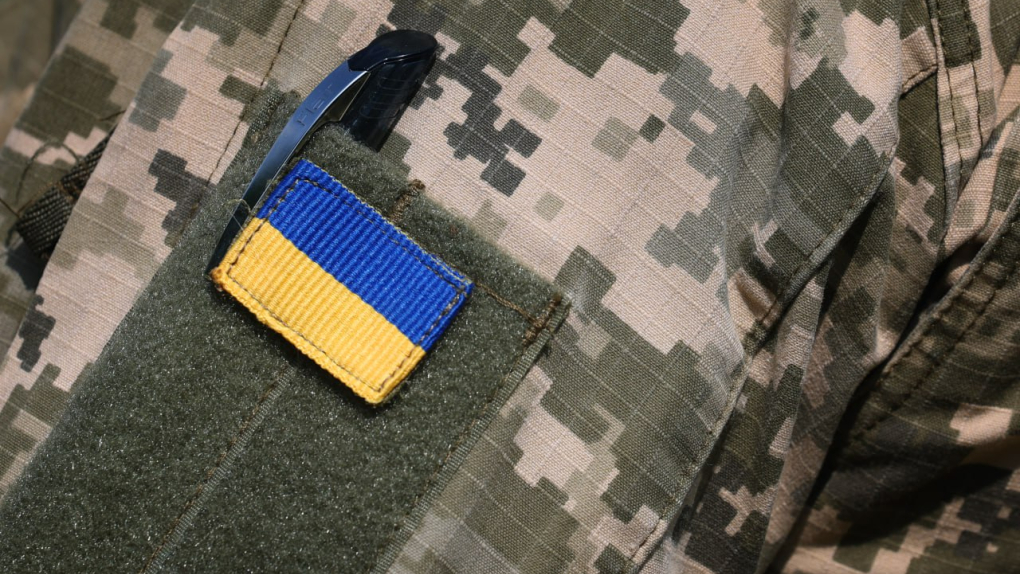 Журналисты показали снимок, на котором находятся два человека. Один из них стоит в футболке с изображением трезубца на рукаве, второй одет в серо-синюю камуфляжную форму.