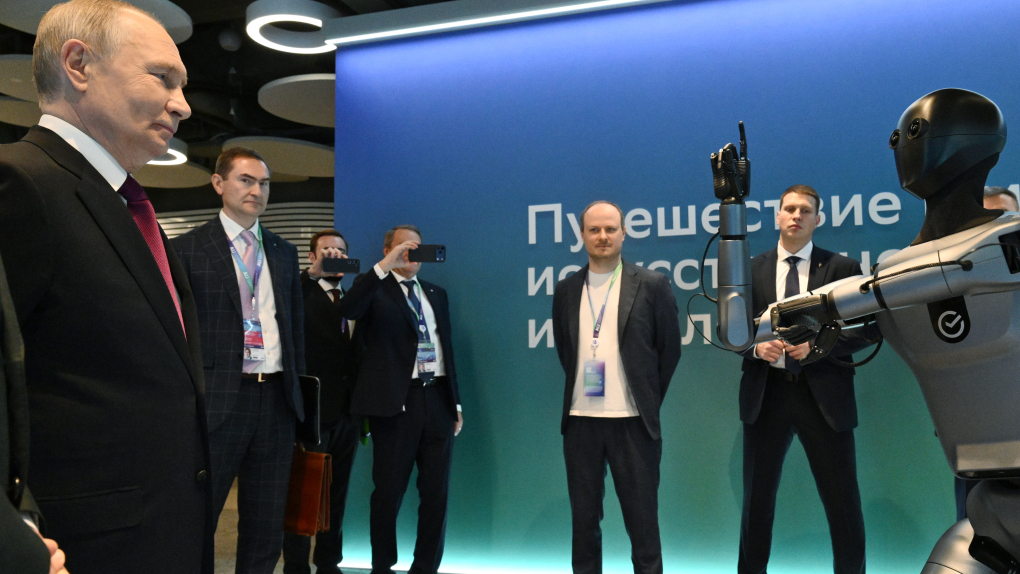 Президент России Владимир Путин посетил международную конференцию по искусственному интеллекту AI Journey-2025 в Москве и познакомился с первым ИИ-роботом Сбера по имени Грин. Машина исполнила для главы государства ритмичный танец.