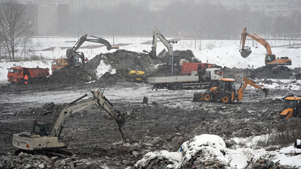 "Сегодня здесь развернута масштабная работа по подготовке этой площадки, зачистки ее. Работает около тысячи машин, круглосуточно, созданы все необходимые условия для работы: временные пункты питания, обогрева", - заявил Собянин.