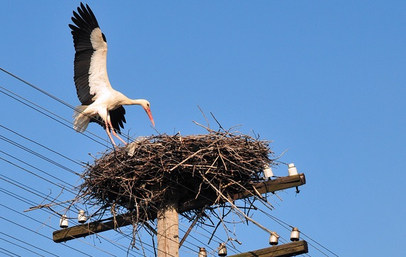 проводами высокого напряжения. Жизнедеятельность аистов становится причиной