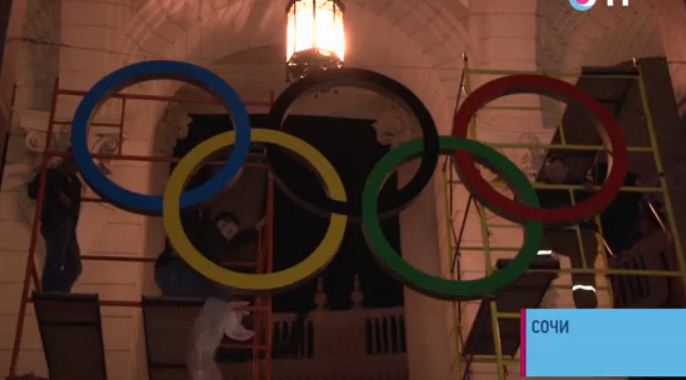 установлены олимпийские кольца. Так в столице Зимней Олимпиады отметили 100