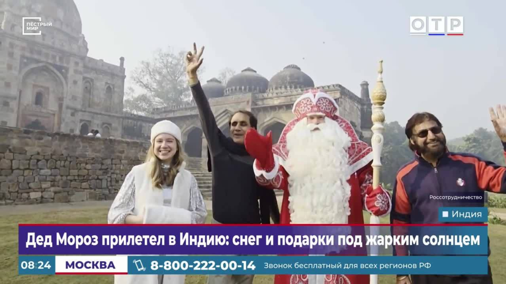 Российский Дед Мороз с приходом зимы отправился в... Индию. В Нью-Дели на улице +20 °C, и никому не придет в голову надеть шубу. Зимний волшебник привлек к себе внимание с первых минут пребывания, посетив международную школу «Санта Мария», где 150 учеников получили подарки…