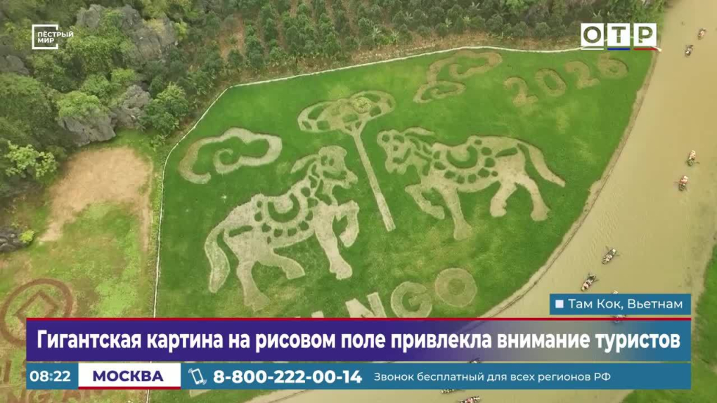 Вьетнамские фермеры создают картины на рисовых полях. Живописное панно размером почти в гектар посвящено году Лошади. Посмотреть на это чудо приезжают туристы…